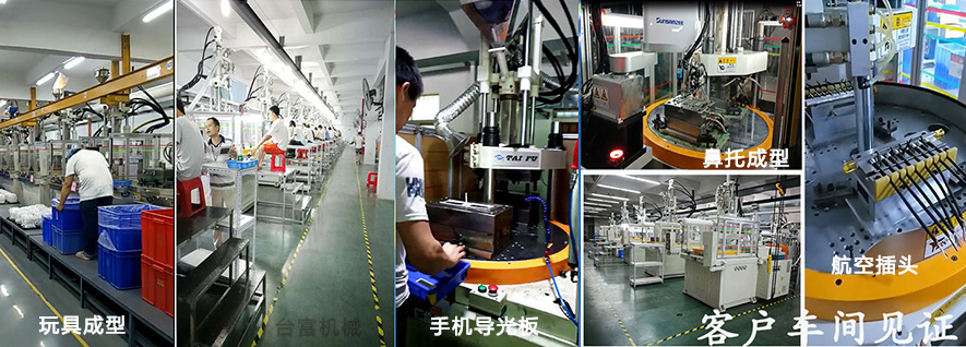 一、轉盤式:可多站式設計,一個上模,2到8個下模同步進行埋入、注塑包膠、取件,節省時間提率;